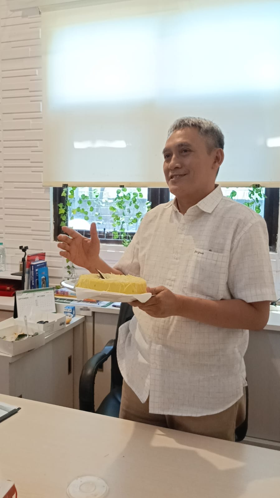 Dekan Fakultas Teknik menerima kue ulang tahun
